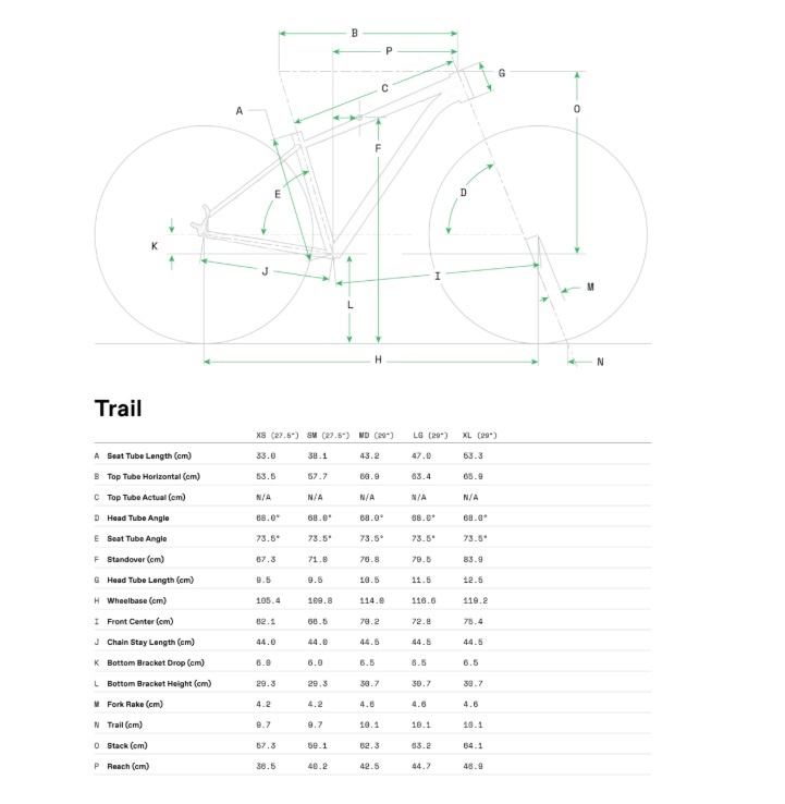 • 29” wheels on the larger sizes, 27.5” wheels on XS and Small for the best blend of fit and speed
